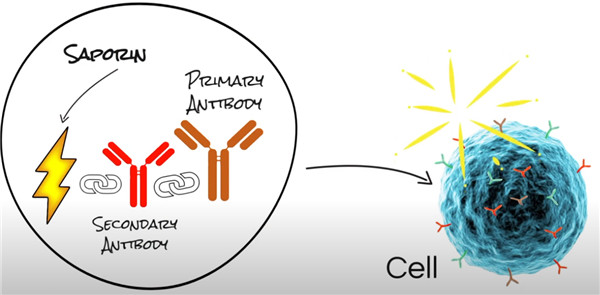 基于Saporin的生物学特性,将Saporin分别与靶向剂(比如一抗)或者二抗分子偶联就开发出兼具靶向功能和生物毒性的靶向毒素(Targeting Toxins)和二级偶连毒素(Secondary Conjugates)。