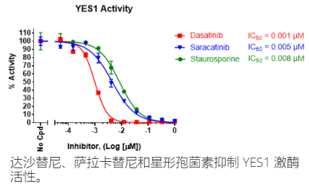 Chemi-Verse? YES1 激酶检测试剂盒设计用于测量 YES1(山口肉瘤病毒癌基因同源物 1)酪氨酸激酶活性,用于使用 ADP-Glo? 作为检测试剂进行筛选和分析应用。