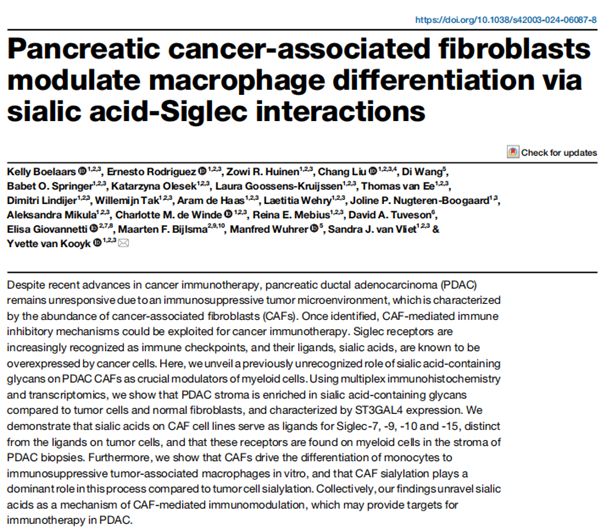 Lectenz品牌的SiaFind Pan-Specific Lectenz Kit(SK0501)被用于检测PDAC患者组织样本中的唾液酸表达,显示出在CAF区域的高表达水平,这为后续实验提供了关键线索。